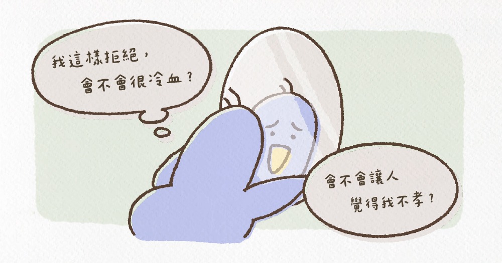 但如果對方把你的拒絕直接解讀成冷漠、不孝或自私, 或是用失望、指責、比較的方式讓你產生內疚感。